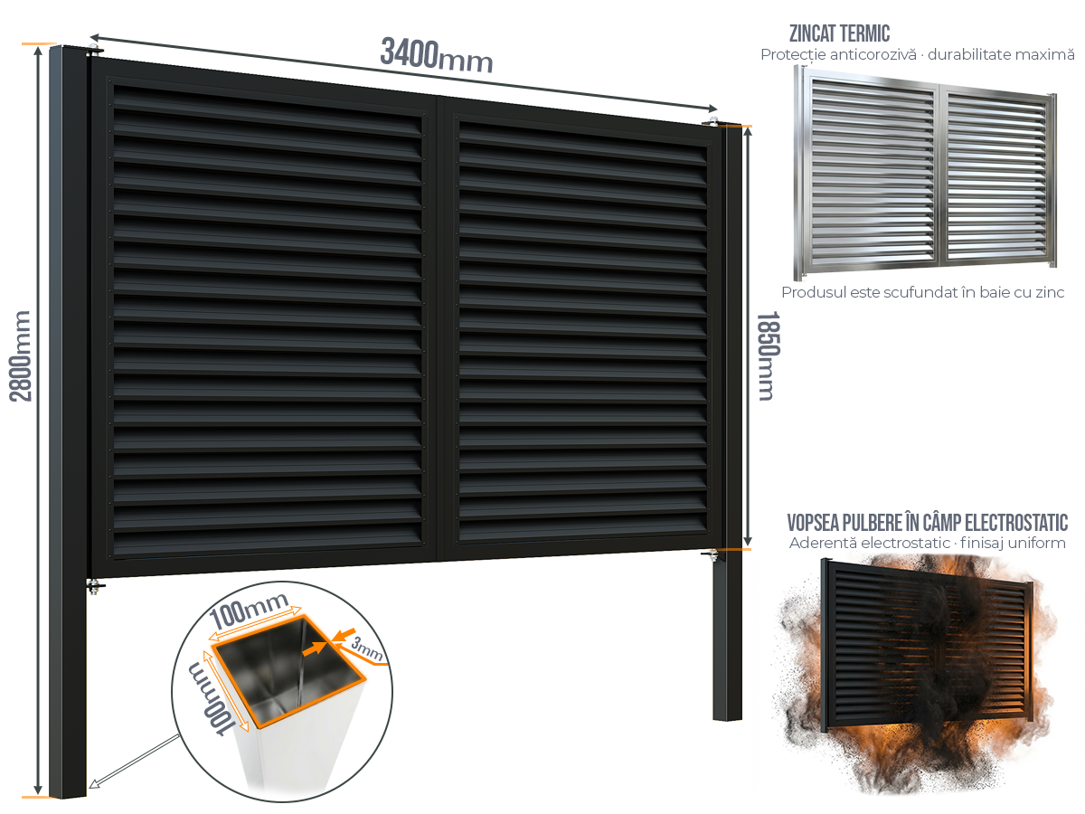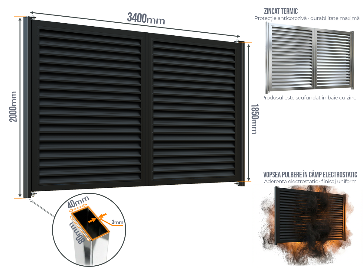 Selectați dimensiunea: Poarta Batanta Jaluze fără stîlpi