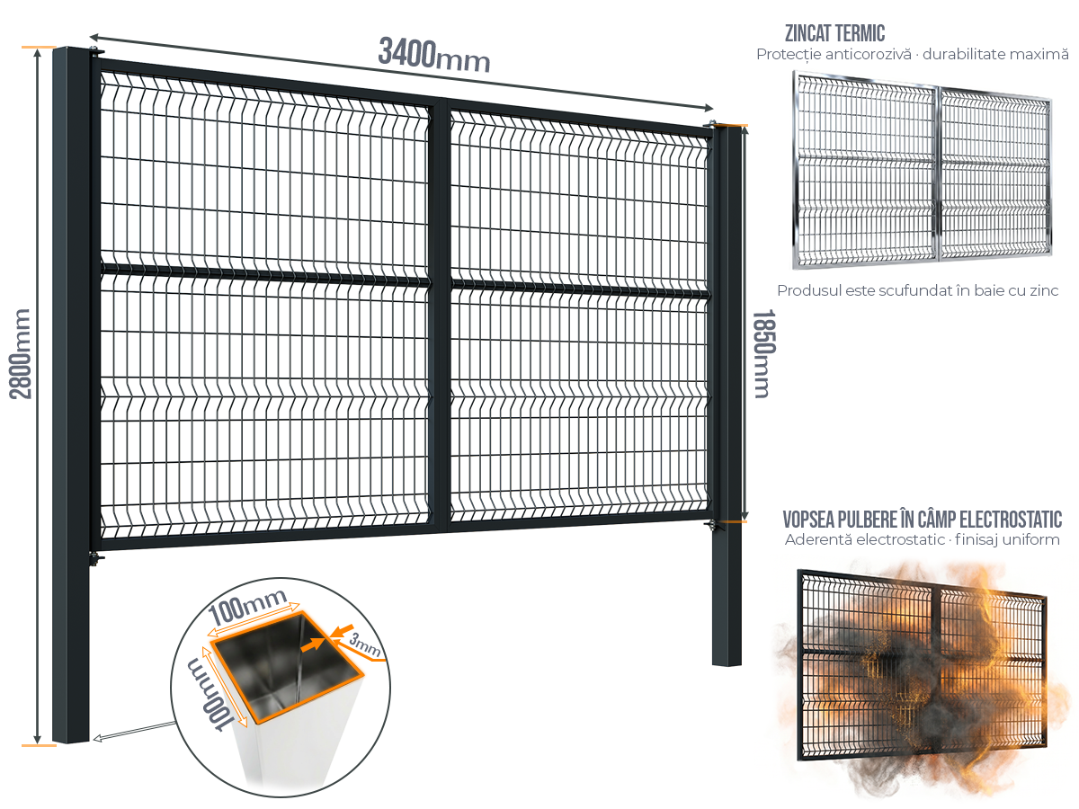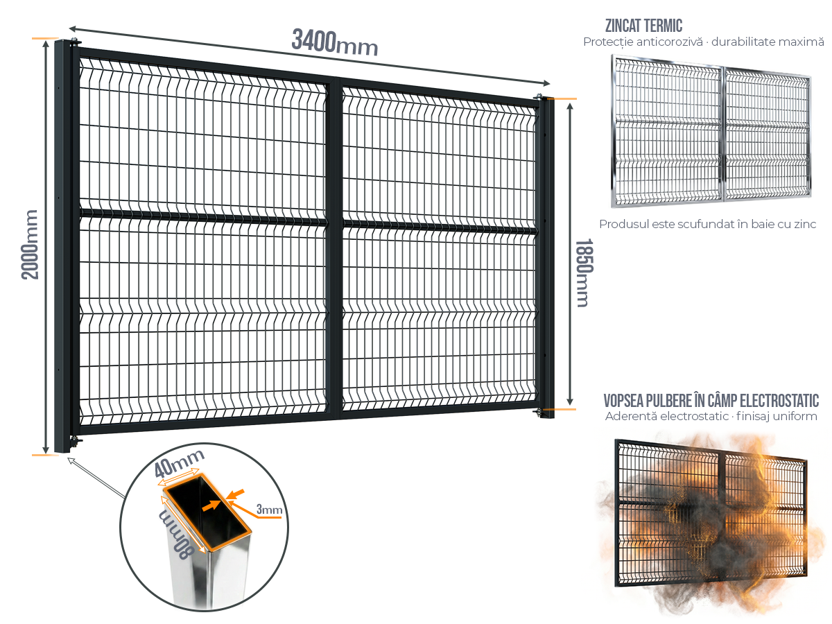 Selectați dimensiunea: Poarta Batanta Plasă Bordurata fără stîlpi